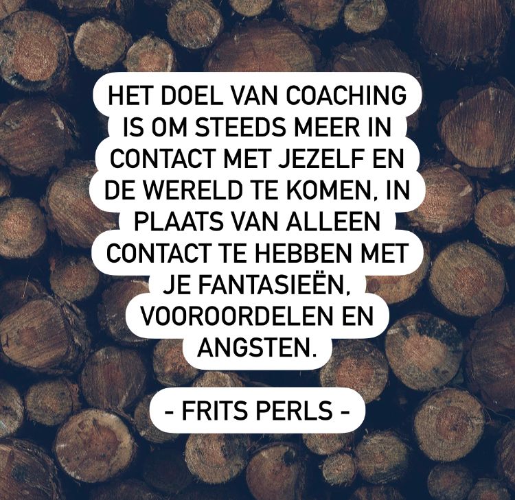 Het doel van coaching is om steeds meer in contact met jezelf en de wereld te komen, in plaats van alleen contact te hebben met je fantasiën, vooroordelen en angsten. ~Frits Perls~